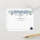 Möhippans aktivitetskort har vattenfärgsöverlappning med blå blommigtar som är grönare med tekanna. Råkort uppmanar gästerna att ge råd till bruden.