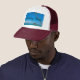 Vit och marontid-text med Truckerkepsen Beach kan du redigera Helgdag som Helgdag och Bild. Truckerkepsar är en stil av basebollsockel som vanligtvis har ett ryggstöd och en skumbildskärm med böjd brim