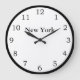 En väggklocka med svarta siffror och New York för östran zon