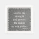 Gammal testamentets bibliska citat i vit text på en struktur-bakgrund med träkol-grått-brännpunkt med vit filigree-gräns. "Gud är min styrka och kraft: Han gör min perfekt." 2 Samuel 22:33.