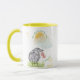 Var fågeln tidigt och fånga mask.. Vakna varje morgon och fyll din mugg med din gosse-läskedryck, samtidigt som du påminde dig själv om varför du såg soluppgången... Det här keramiska kaffet med två färgader mugg med originalkonstverk av Mollie B. från en sida i hennes "Vild-Yonder Tales of Misfit Friends on The Copper Penny Farm"-serie i kort, tar läsningen till verkligheten i ditt händer..