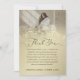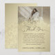 Ett elegant tackkort för bröllop med en mjuk guld-damaskmönster och förfinad konstnärlig detalj. Framsidan visar en varm "Tack" rubrik i graciös skrivstil, tillsammans med ett hjärtligt tack till Herren och till gästerna för deras närvaro. Kortet förenar tidlös sofistikation med personlig känsla, vilket gör det till ett perfekt minne för att hedra dem som delade i bröllopsfirandet.