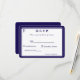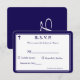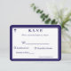 Designen på framsidan har det traditionella formatet för en bröllopssvarskort visad i en marinblå typsnitt mot en vit bakgrund. Bilden av ett kors visas i övre hörnet. Hela designen är inramad av en elegant marinblå och vit kant.
