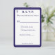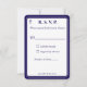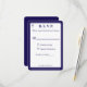 Designen på framsidan har det traditionella formatet för ett bröllpssvarskort i en marinblå font mot en vit bakgrund. Bilden av ett kors visas i övre hörnet. Hela designen är inramad av en elegant marinblå och vit kant.