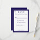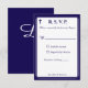 Designen på framsidan har det traditionella formatet för ett bröllopssvarskort visat i en marinblå typsnitt mot en vit bakgrund. Bilden av ett kors visas i övre hörnet. Hela designen är inramad av en elegant marinblå och vit kant.