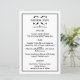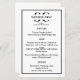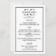 Denna tidlösa och sofistikerade 'bröllopsmeny' har en klassisk svart-vit design med en dekorativ avdelare. Den eleganta layouten utstrålar modern charm samtidigt som den behåller en touch av tradition, perfekt för par som uppskattar raffinerad estetik. Tryckt på högkvalitativt kartongpapper sätter denna design tonen för en stilren och minnesvärd fest.