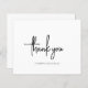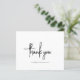 Klassisk och elegant budget bröllop tack kort med en enkel layout med "tack" i ett modernt typsnitt och era namn och bröllopsdatum nedan. Den rena och minimalistiska layouten gör detta svart-vita bröllop tack kort bra för ett traditionellt, formellt bröllop.