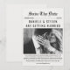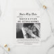 Letar du efter ett unikt och elegant sätt att tillkännage ditt kommande bröllop? Detta "Spara datum"-kort i tidningsstil är det perfekta sättet att tillkännage din speciella dag för dina nära och kära! Med en anpassningsbar fotoruta kan du lägga till din egen personliga touch i din tillkännagivelse. Tidningsdesignen ger en touch av sofistikering och klass till ditt meddelande.