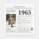 Säg grattis på födelsedagen till en person som föddes 1965 med dessa unika dagstidningar stil-blöjor, inklusive en samling roligtar och världsnyheter från födelseåret. Hämta kreativ och skapa en anpassningsbar keepy! Designat för att likna en vintage tidning med svartvit text är det lätt personlig med ett foto av hedersgästen och deras namn. Fira 1960-talet i unikt stil.