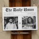 Coola tidningsartikel bröllop gästbok. Anpassa den med information om evenemanget och ett foto av brudgummen och trimningen.