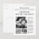 Önska farfar en trevlig fars dag med detta tidningsliknande vykort. Helt anpassningsbart så att du kan vara kreativ och skapa en unik souvenir som farfar kommer att älska. Med texten "Farfar, du är den bäste!" tillsammans med ett personligt meddelande och familjefoton. Designad för att likna en gammal tidning, med personliga rubriker, text och 3 bilder som du väljer. Tom insida för dina personliga handskrivna signaturer.