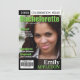 Sängkammarbröllopsinbjudningar som ser ut som omslaget på en tidning. Anpassa med brudens foto, fästman, förlovning och festdetaljer. För bästa resultat, använd ett högupplöst foto som visar hela till mitten av den övre halvan av bruden. Svart & vit eller färgbilder kan användas.