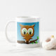En söt liten uggla på en gren. Ursprungligt tecknade figurer med tidningspapperseffekt tillämpad på bilden.