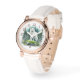 Den här exquisite wristwatch har en fantastisk utformning av en vit varg som står stolt på ett sten som är täckt av flera stolar och omgiven av lush evergreen träd. Titta ansikte är inneslutet i ro guld ram, kompletterat med ett vitt läderband. Siffrorna är elegant formaterade i ett klassiskt teckensnitt, vilket gör att den övergripande designen blir lite sofistikerad. I denna tidspunkt kombineras naturens skönhet på ett vackert sätt med ett raffinerat hantverk, och den skapar som ett unikt och fängslande tillbehör.