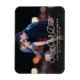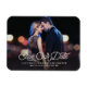 Elegant och snyggt spara datum meddelande med foto med vitt modernt skript. Magnet.