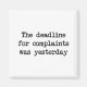 Tidsfristen för klagomål var i går. Vi tar inte längre emot klagomål för närvarande. Snälla, sluta klaga.