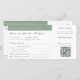 Elegant Boarding Pass Sage Qr Code Bröllop Destinationskort för Helgdag i sage färg med OSA och tidslinje på baksidan