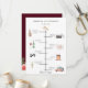 Rustiskt färgat vattenfärgsprogram bröllopsdag inslag, tidslinjeprogram. Kortet har kyrka, kamera, flaska med glas, plattor, musik noter, tårta, bukett och retrobil. Kortets baksida har vattenfärgsburgundi och blommigt och gräns med samma burgundröd bakgrund färg . Designad att samordna med vår burgundi samling av botaniska Blommigtar.
