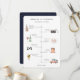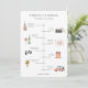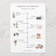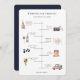 Rustiskt färgat vattenfärgsprogram bröllopsdag inslag, tidslinjeprogram. Kortet har kyrka, kamera, flaska med glas, plattor, musik noter, kakor, solrosbukett och retrobil. Kortets baksida har fast marin blå färg. Textteckensnittet stil och färg kan anpassas.