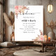Ett modernt program, elegant bröllop, tidslinje. En vit bakgrund med pampasgräs och rosa blommigt, ro. Anpassa och lägg till information om namn och bröllop. Svart färgad brev. Om du har mer text kan du minska radavståndet.