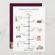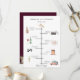 Rustiskt färgat vattenfärgsprogram bröllopsdag inslag, tidslinjeprogram. Kortet har kyrka, kamera, flaska med glas, plattor, musik noter, tårta, bukett och retrobil. Kortets baksida har vattenfärgsfärg blommigt och blad gräns med samma bakgrund för vin lila färg . Designad att samordna med vår och plommonsamling för Blommigt.