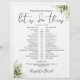 Tidslinjen för botaniskt grönt bröllop i schemat för snyggt kan vara personlig med dina uppgifter om bröllop i chic typografi. Designad av Thisisnotme©