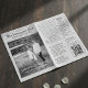 Ett tidningskort som innehåller ett foto och en exklusiv artikel Detta är ett unikt sätt att låta dina nära och kära veta att du är förlovad och påminna dem om att spara datumet. Du kan lägga till och ta bort all information du vill med det anpassningsbara alternativet.