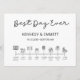 Dina gäster kommer att läsa alla uppgifter om bröllop på dessa vackra tidslinjeprogram för Bröllop! Den har "Bästa dagen någonsin" överst och mitt i ett vackert handskrivet teckensnitt och du kan enkelt redigera ikonens tidslinje för att passa bröllopsdagens schema. Det här 5,5 x 7,5-programmet är perfekt om bröllop ligger vid klubben land, eller till och med vid domstol. Det är enkelt, trendig och minimalistiskt och typsnitt är modernt och lätt att läsa. Gör det så unikt som du!
