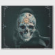 Tidens skull: romerska siffror och fleeting stunder. En elegant ställs in i skallens framhuvud och blandas harmoniskt med skallstrukturen. Ringningen är klassiskt designad och har romerska siffror som ge ser ut som en tidlös elegans. Kombinationen av den anatomiskt korrekta skallen och funktionsanvisningen skapar en imponerande symbios av konst och funktionalitet, steampunk stil.