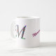 I morse har kaffe eller te mugg ett färgstarkt brev M-monogram med en slips, snurrande mönster. Namn och färg kan snabbt och enkelt bli personlig.