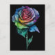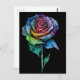 Ett häpnadsväckande vykort i ro. Det här färgstarka vykortet har ett enda ro med flerfärgade petaler i en färgtråd som målar stil och skapar ett unikt utseende som utmärker den svarta bakgrunden. Perfekt vykort som ska skickas till alla som har kärlek färgstarka och unika vykort.