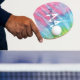 Rosa och teal blue pastel tie dye vävnad på en anpassningsbar pingpongpaddle-personlig med ditt namn och första brev i monogram i ett roligt och ett gigantiskt modernt skript för ett uppdaterat dip die hippy-utseende.