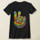 En fredstecken räcker symbol i en groovy multifärgadtie-färg spiral. T-tröja hoodies, kort, gåvor.