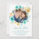 Turkos/ Tiffany Guld Blommigt Wand - Photo Save the Date Card. (1) Om du vill göra ytterligare anpassningar klickar du på länken "anpassa ytterligare" och användor verktyg som är utformat för att ändra mallen. (2) Om du föredrar Avsluta /projektionsyta kan du överväga att välja Papper projektionsyta. (3) Kontakta mig om du behöver hjälp eller matchande artiklar.