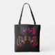 Vår Tigerscape-tote-väska är designad med Bengal tiger konturteckningar, i djupa nyanser av , orange, nyp och fuchsia på svart bakgrund. Hela väskan är fullt anpassade, inklusive fram- och baksidan, färg. MineByDesign kan också arbeta med dig på vilken anpassad design du vill ha.