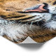 Den här utskriften har en tätt intill en tigers ansikte, där tigraren tittar direkt på dig och hans orange och svarta randiga markeringar visas med underbar skärpa och detaljskärpa. Underbar väggdekoration för djur och vilda djur och älskare. Foto i San Diego, Kalifornien.