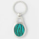 Tiger Black and Teal Print Ovalt Silverfärgad Nyckelring