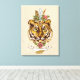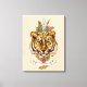Denna formgivning har en vattenfärg i stil porträtt i en tiger som är klädd i blommor och fjädrar.
