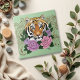Tiger porträtt med rosa och lätt lila blommor. Henna runt tiger i en grönt.