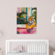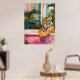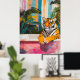Upptäck en fängslande minimalistisk målning av en tiger-relaxering i ett badkar som ställs mot en vibrerande tropisk trädgårdsbakgrund. Denna stora poster har fet färg, grafiskt inslag och uttrycksfullt linjer och skapar ett unikt och sofistikerat biet av väggkonst.