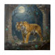 Tiger in Ancient Dunes under the Full Moon Kakelplatta