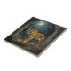 Tiger themed tile with a majestic impasto illustration of a golden tiger walking through the ancient dunes, full moon up in the sky shining down on the tiger's golden fur.