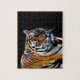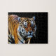 Att bedöva fotograferar av en härlig tiger som står ut mot en svart bakgrund.