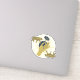 Det här klistermärket har två guld och blå tigrar, en hand som håller en blomma och en solbränna.