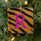 Detta prydnadsämne har ett shock rosa monogram över tiger rand. Anpassa baksidan med ditt eget meddelande.