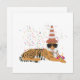 En söt illustration av en tiger partying och roligt! Tiger med en trafikon party hatt och blåst party horn med konetti som regnar ner. Låt firande börja! Perfekt för alla som kärlek lustiga djurillustrationer. Perfekt för en födelsedagspresent, daghemsdekoration, barnrumskonst, hemdekaler, Julklapp eller gåva till något annat specialtillfälle.