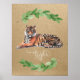 Söt tigertryck, perfekt neutral med en kraft brun bakgrund, akvarell grönska och vit kalligrafi text.