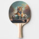 Tiger sitting on a sports car pingisracket