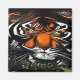 Ursprunglig målning av tigrar ansikte som stirrar. Skapas med akrylfärg på arbetsytan.