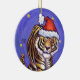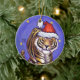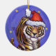 För tigerrundan för den djura paraden presenterar den festliga prydnaden för jul vårt roliga konstverk av en gullig tiger som prydas ut i en röd Santa hatt med en texturerad mörk - himmel för den starry natten för blått som målas av vår begåvade djura konstnär, Traci Skåpbil Wagoner. På baksidaen av många av denna roliga djura helgdagdekoration ska du också fynd som vår nyckfulla tiger från baksidaen som ha på sig en järnekkran med den röda julen, bugar på henne som är nedersta. Tillgängliga anpassad design.